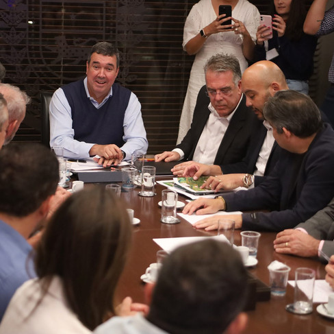 A reunião contou com a presença do secretário Guilherme Alcântara (Seilog), dos deputados federais Geraldo Resende e Dagoberto Nogueira, Beto Pereira, e dos parlamentares estaduais Mara Caseiro, Márcio Fernandes, Lucas de Lima, Zé Teixeira e Pedrossian Neto.
