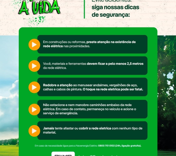 A Neoenergia Elektro destaca para toda a população a necessidade de seguir essas orientações para evitar tragédias. A segurança é uma responsabilidade compartilhada, e a atenção aos detalhes pode salvar vidas. Para mais informações, visite neoenergia.com/segurança.